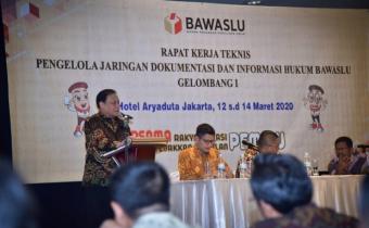 Ketua Bawaslu Abhan saat menjadi narasumber dalam Rapat Kerja Teknis Penguatan Pengelola Jaringan Dokumentasi dan Informasi Hukum (JDIH) Bawaslu Gelombang I di Jakarta, Kamis (12/3/2020) malam/Foto: Humas Bawaslu RI Abhan: JDIH Pintu Agar Publik Mudah Akses Perbawaslu J