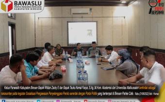 Bireuen – Selain peserta pemilu, penyelenggaranya juga harus diawasi. Hal itu disampaikan Teuku Kemal Fasya saat mengisi acara Sosialisasi Pengawasan Penyelenggaraan Pemilu dengan Multi Stakeholder yang diselenggarakan Panwaslih Kabupaten Kab.