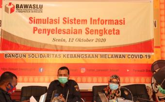 Bireuen,Panwaslih Kabupaten Bireuen - Belasan staf Panwaslih Kabupaten Bireuen, mengikuti Rapat Dalam Kantor (RDK) Simulasi Sistem Informasi Penyelesaian Sengketa (SIPS), Senin (12/10/2020), di ruang rapat sekretariat setempat.