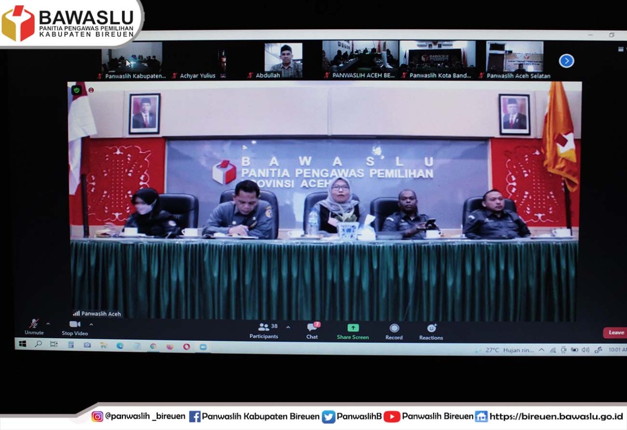 Bireuen - Panwaslih Provinsi Aceh melaksanakan zoom meeting bertemakan Rapat Koordinasi Rapat koordinasi Awal tahun Sekretariat Panwaslih Kabupaten/Kota Se- Aceh, Senin (17/01).