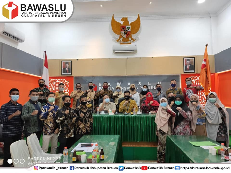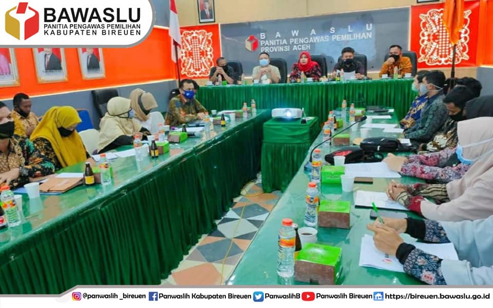 Banda Aceh, Panwaslih Kabupaten Bireuen - Bawaslu bersama Panwaslih Provinsi Aceh dan Panwalih Kabupaten/Kota lakukan kegiatan monitoring dan evaluasi tindaklanjut aktifitas Alumni Kader Sekolah Kader Pengawas Partisipatif (SKPP) Nasoinal Provinsi Aceh yang dilaksanakan dia Aula kantor Jumat (6/11/2020)