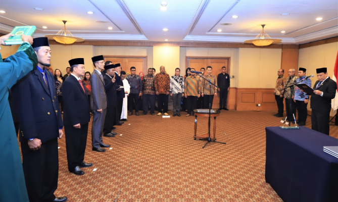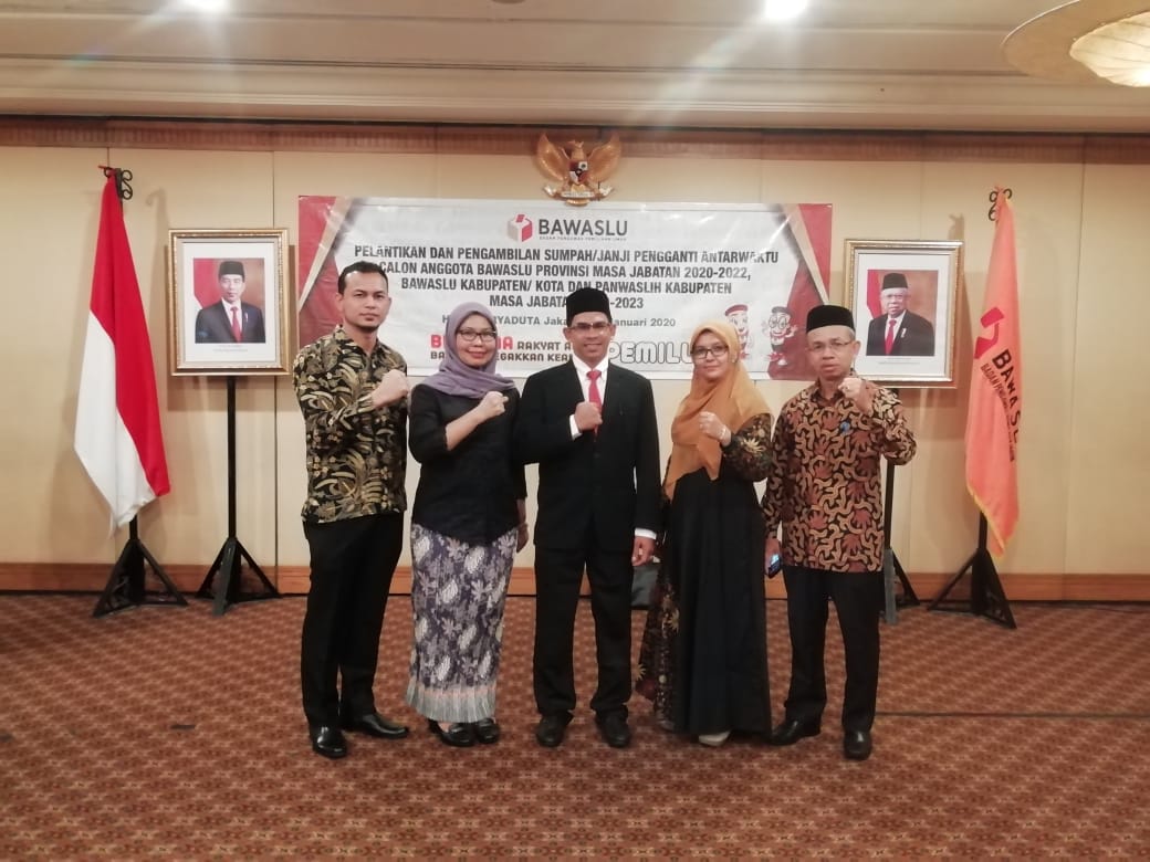 Jakarta, Bawaslu – Ketua Bawaslu Abhan melantik dan mengambil sumpah/janji sembilan orang Pengganti Antar Waktu (PAW) Anggota Bawaslu provinsi dan kabupaten/kota. Di antaranya Abdullah Yunus menggantikan Almarhum Abdul Majid yang meninggal dunia pada 8 Oktober 2019 lalu. Abhan meminta kesembilan Anggota Bawaslu baru itu cepat beradaptasi dengan lingkungan kerja untuk menghadapi Pilkada 2020. “Saya minta saudara yang baru saja dilantik ini agar segera adaptasi dengan lingkungan kerja di Bawaslu daerah masing-masing. Tugas mengawal pemilihan kepala daerah (Pilkada) 2020 telah menanti, harus cepat menyesuaikan,” kata Abhan saat pelantikan PAW Anggota Bawaslu provinsi dan kabupaten/kota di Jakarta, Senin (27/01/2020). Abhan meyakini, dengan hadirnya anggota baru di Bawaslu daerah yang tadinya terdapat kekosongan, mampu menambah kekuatan dan dukungan dalam rangka menyukseskan pilkada 2020. Dia juga berharap, sembilan anggota Bawaslu tersebut dapat menjalankan tugas serta fungsinya sebagai pengawas pemilu dengan baik. Menurutnya, sumpah/janji bukan hanya disaksikan oleh manusia, melainkan juga disaksikan oleh sang maha kuasa. “Sumpah/janji harus diselaraskan dengan bekerja baik dan ikhlas. Dan sebagai penyelenggara Pemilu tentunya netralitas dan integritas harus dijunjung tinggi,” tegas mantan Ketua Bawaslu Jawa Tengah itu. Pelantikan ini turut dihadiri Anggota Bawaslu Mochammad Afifuddin, Sekretaris Jenderal Bawaslu Gunawan Suswantoro, dan Kepala Biro Hukum, Humas, dan Pengawasan Internal Ferdinand Eskol Tiar Sirait. Berikut Sembilan PAW Anggota Bawaslu daerah yang dilantik : 1. Abdullah Yunus (Panwaslih Kabupaten Bireuen) periode 2020-2023 2. Abraham Ramandaei (Anggota Bawaslu provinsi Papua Barat) periode 2020-2022, 3. Bonifasius (Anggota Bawaslu Kabupaten Landak), 4. Sakta Abaway Sakan (Anggota Bawaslu Kabupaten Grobogan), 5. Achmad Gozhali (Anggota Bawaslu Kabupaten Kendal), 6. Chairul Anam (Anggota Bawaslu Kabupaten Ngawi), 7. Nur Mustofa (Anggota Bawaslu Kabupaten Blitar), 8. Sarmin (Anggota Bawaslu Kota Bau-Bau), 9. Hafidh (Panwaslih Kabupaten Aceh Besar),