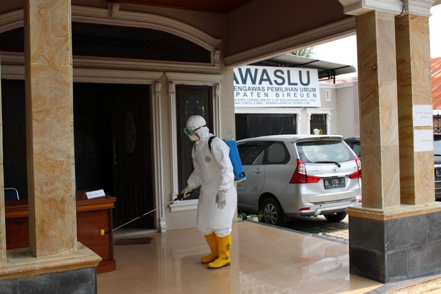 Cegah Corona, Gedung Panwaslih Kabupaten Bireuen Disemprot Desinfektan