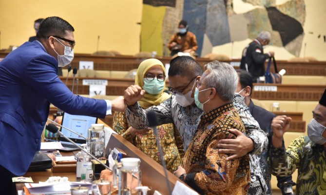 Jakarta, Badan Pengawas Pemilihan Umum - Komisi II DPR RI mengapresiasi kinerja penyelenggara pemilu yang sukses menyelenggarakan pilkada di tengah pandemik Covid-19. Salah satunya disampaikan oleh Ketua Komisi II DPR RI Ahmad Dolli Kurnia Tandjung dalam rapat dengar pendapat (RDP) Evaluasi Penyelenggaraan Pilkada Serentak 2020 di Gedung DPR RI, Selasa 19 Januari 2021.