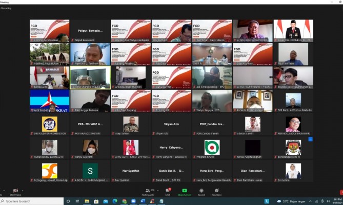 Jakarta, Badan Pengawas Pemilihan Umum - Ketua Bawaslu Abhan tanpa memperhatikan beberapa hal yang mungkin terjadi saat penyelenggaraan Pemilu Serentak 2024. Hal itu disampaikan dalam focus group discussion (fgd) secara virtual yang diselenggarakan KPU mengenai rancangan Peraturan KPU (PKPU) Tentang Tahapan, Program, dan Jadwal Penyelenggaraaan Pemilu dan Pemilihan Serentak Tahun 2024, Rabu (15/9/2021).
