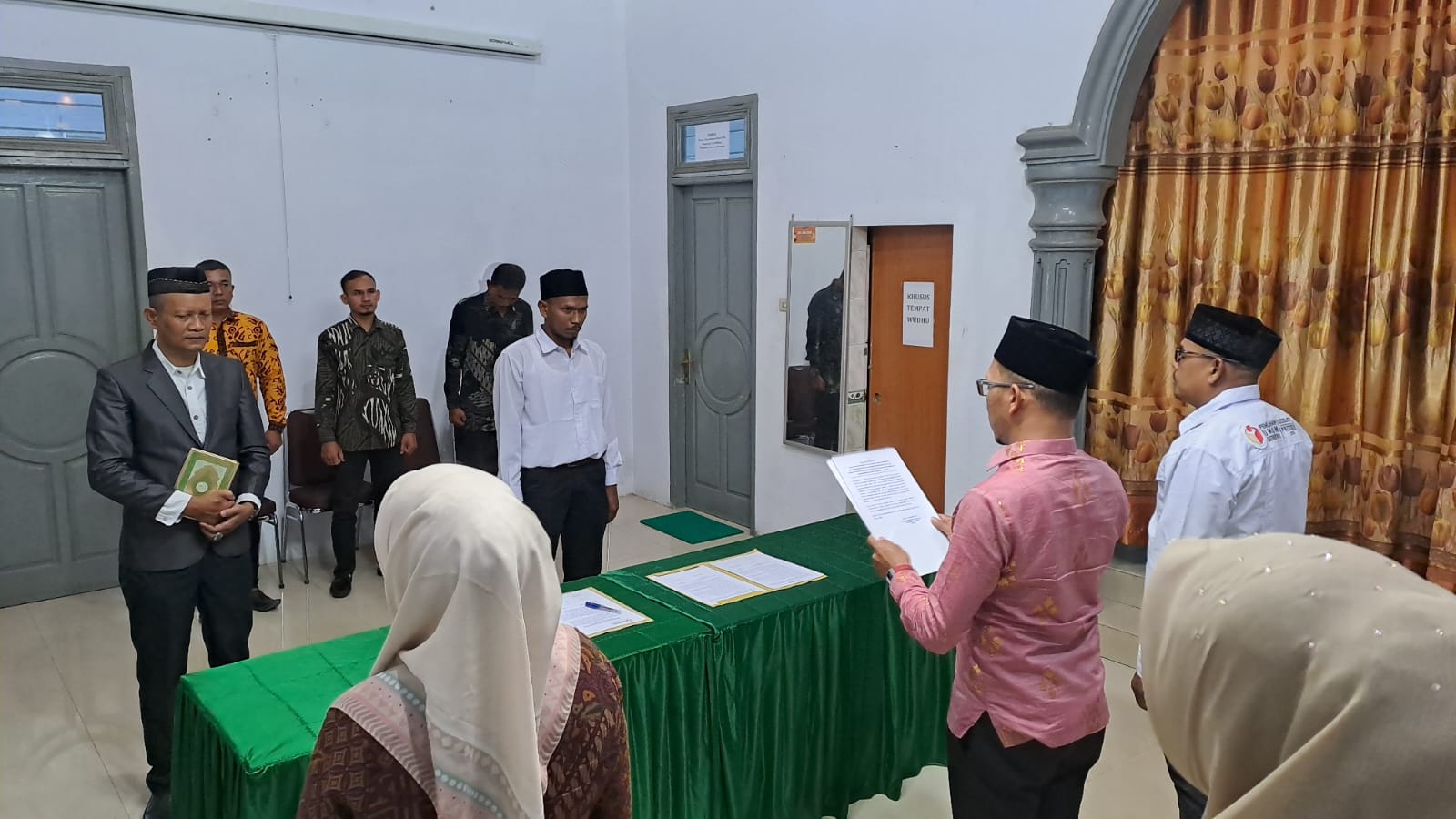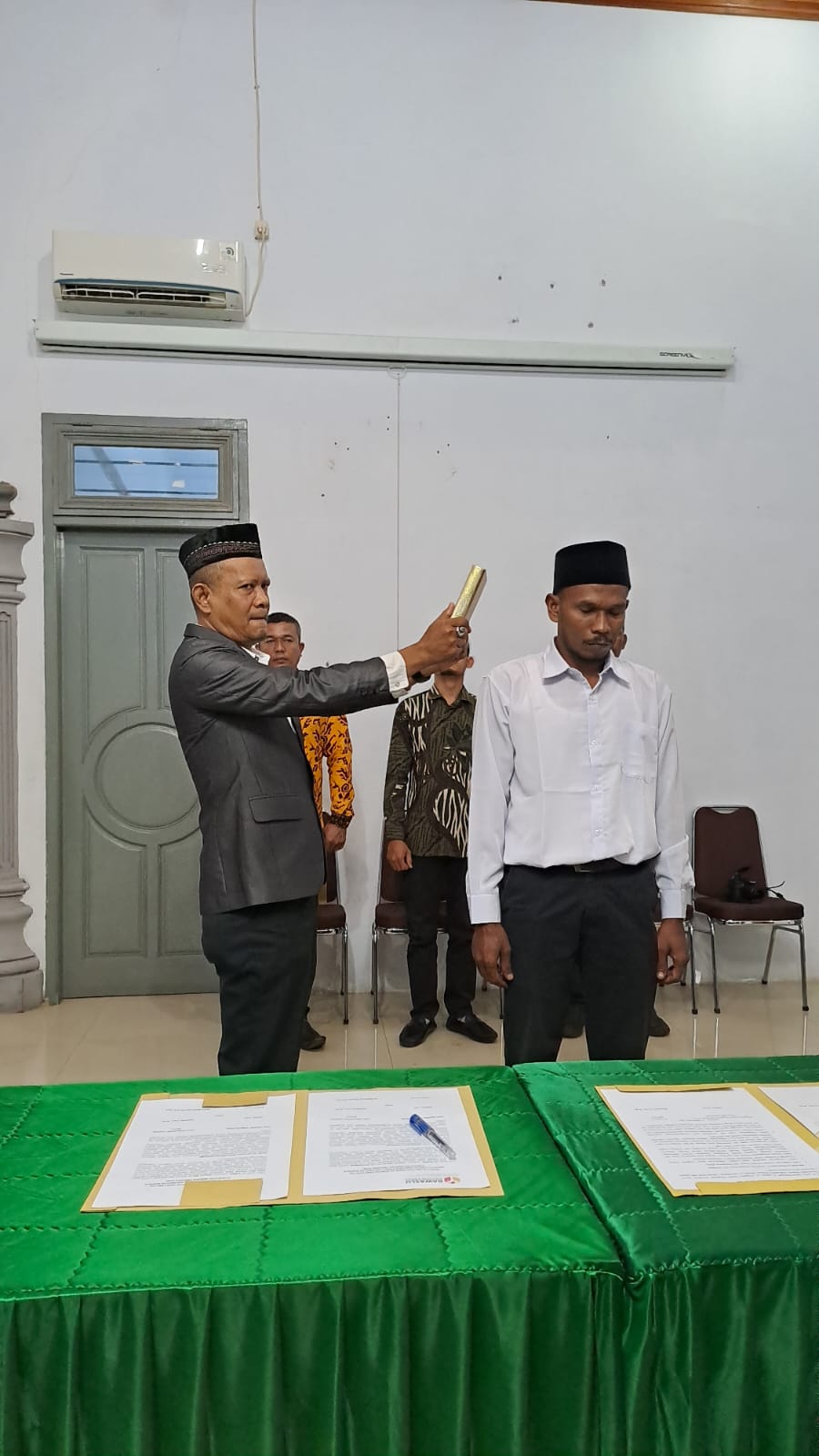 Bireuen - Ketua Panwaslih Bireuen, Rahmad melantik dan mengambil sumpah/janji Pengganti Antar Waktu (PAW) Anggota Panwaslu Kecamatan Makmur atas nama Arizal di Sekretariat Panwaslih setempat pada Kamis (14/09/2023).
