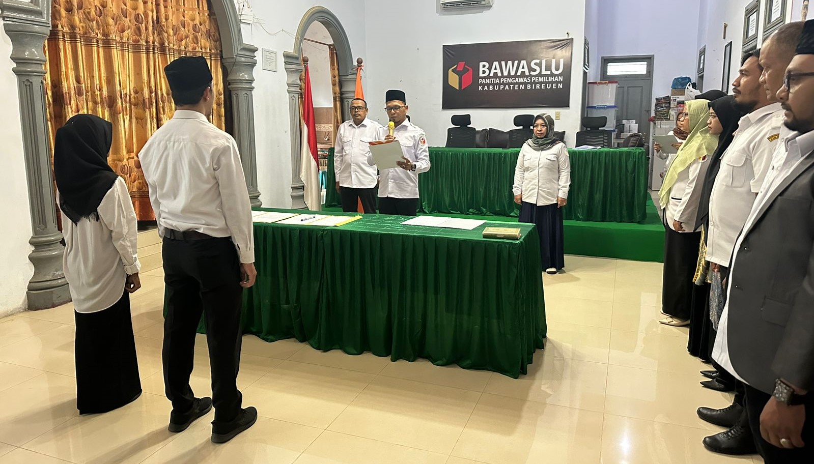 Bireuen- Ketua Panwaslih Bireuen Rahmad melantik sekaligus mengambil sumpah jabatan dua Pengganti Antar-Waktu (PAW) Anggota Panwaslu Kecamatan (Panwascam) Peusangan Siblah Krueng atas nama Ihsan,S.Kom dan Ulfa Fajria,SE PAW Panwascam Kuala. Pelantikan dilaksanakan di Sekretariat Panwaslih setempat, Rabu (11/10/2023).