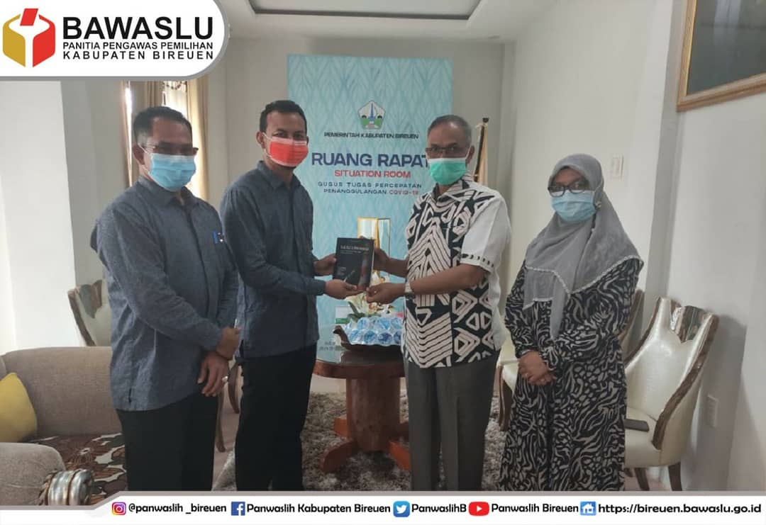 Bireuen,Panwaslih Kabupaten Bireuen - Ketua dan Anggota Panwaslih, melakukan silaturahmi di penghujung tahun 2020. Silaturahmi yang diwarnai dengan penyerahan buku Mercuwaslu tersebut dilakukan kepada Bupati Bireuen, Muzakkar A. Gani dan Ketua DPRK Bireuen, Rusyidi Mukhtar, Rabu (30/12/2020).