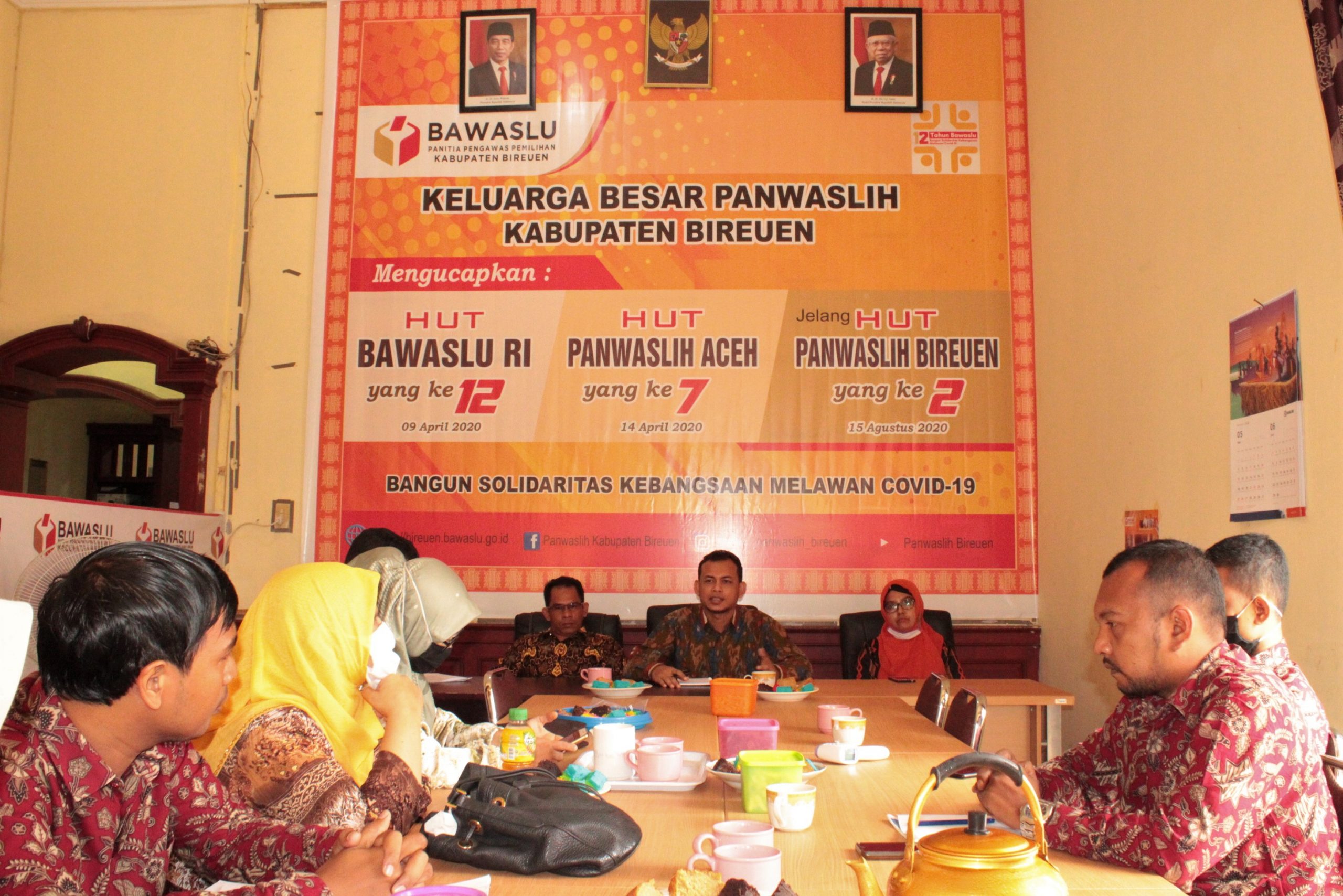 Dihadiri Ketua dan Anggota Panwaslih Kabupaten Bireuen, masing-masing Wildan Zacky, Desi Safnita dan Abdullah Yunus, juga Koordinator Sekretariat, Abu Bakar, yang diikuti oleh belasan staf PNS dan non PNS yang bertugas di Panwaslih Kabupaten Bireuen.