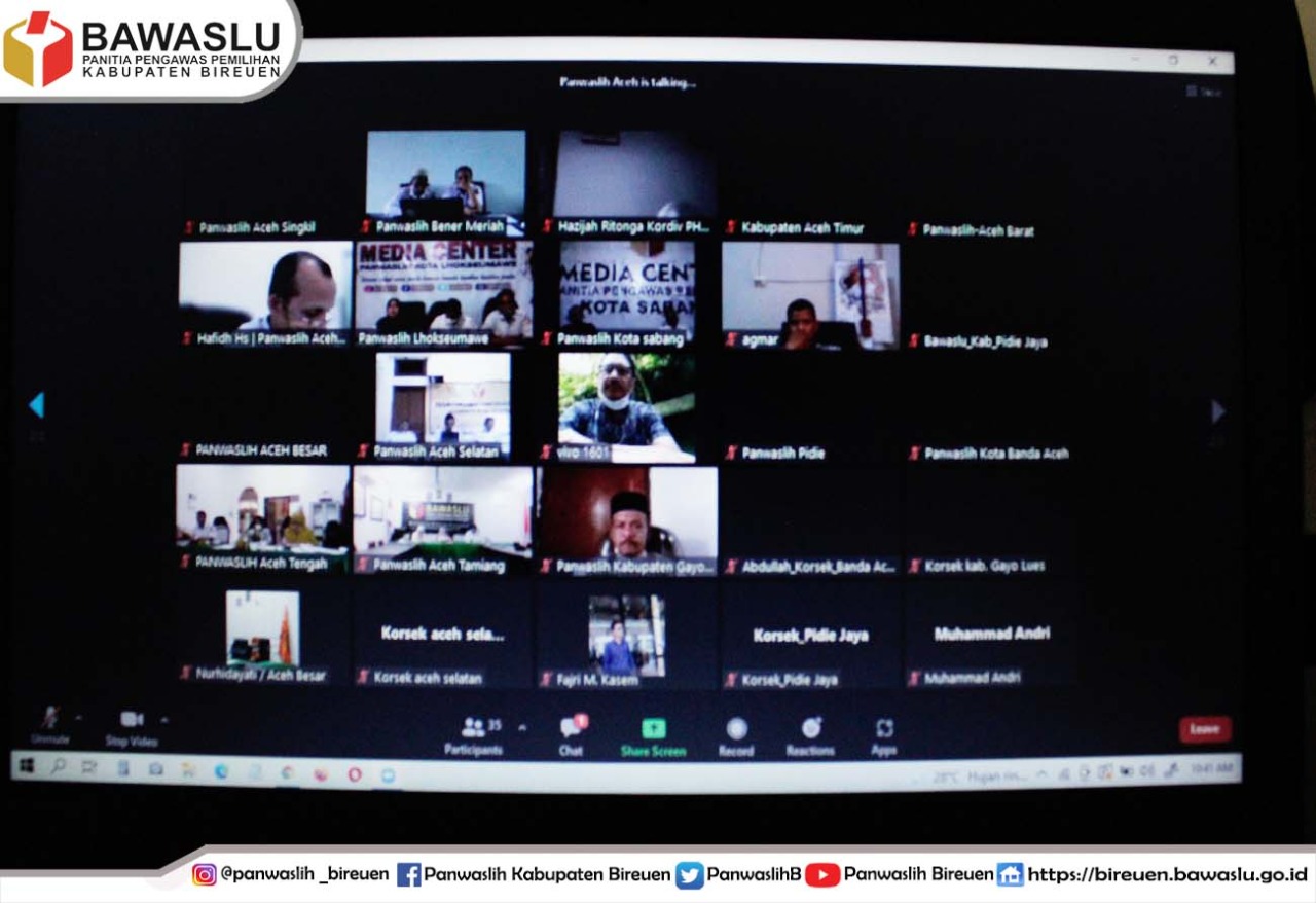 Kegiatan yang dilaksanakan via daring melalui aplikasi meeting zoom tersebut, juga diikuti oleh Ketua dan anggota Panwaslih Kabupaten Bireuen, serta ketua dan anggota panwaslih kabupaten/kota se-Aceh.