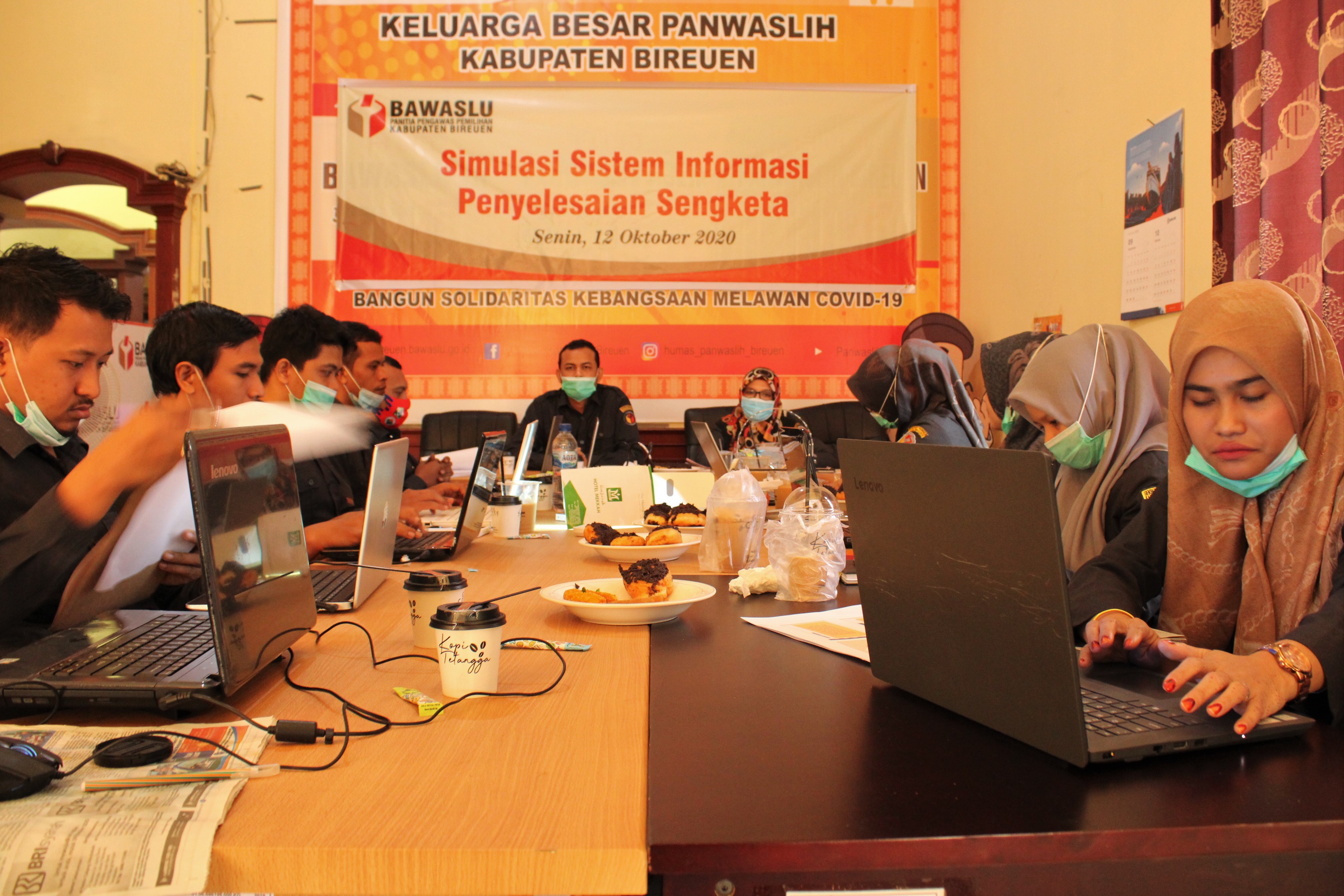 Bireuen,Panwaslih Kabupaten Bireuen - Belasan staf Panwaslih Kabupaten Bireuen, mengikuti Rapat Dalam Kantor (RDK) Simulasi Sistem Informasi Penyelesaian Sengketa (SIPS), Senin (12/10/2020), di ruang rapat sekretariat setempat.