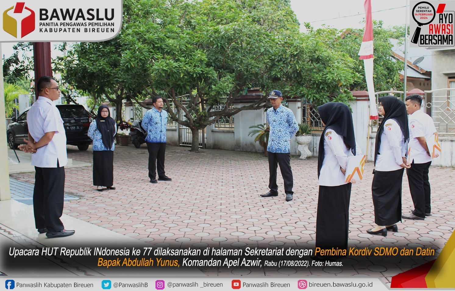 Bireuen - Panwaslih Bireuen melaksanakan upacara hari kemerdekaan Republik Indonesia pada hari rabu tanggal 17 Agustus 2022. Kegiatan berlangsung di halama Sekretariat Panwaslih setempat.