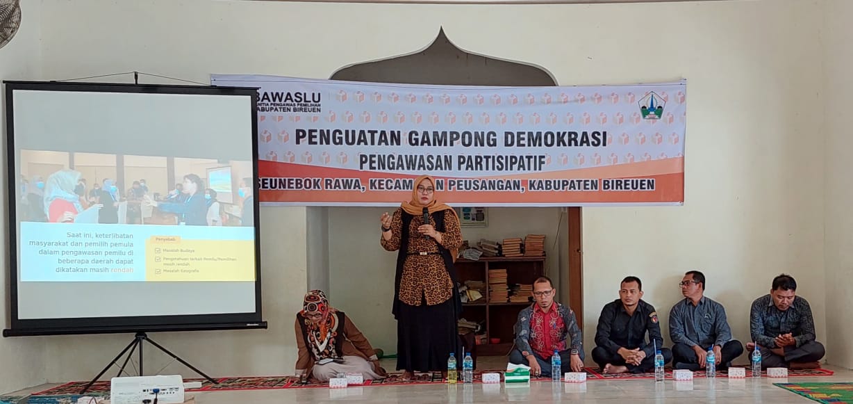 Kegiatan yang bertujuan untuk memperkuat basis gerakan pengawasan partisipatif pada Pemilihan Umum dan Pemilihan kepala daerah tersebut, diikuti oleh sejumlah masyarakat Gampong Seunebok Rawa dan menghadirkan narasumber dari Panwaslih Aceh, yaitu Marini serta Rahmad, Dekan Fakultas Ilmu Sosial dan Ilmu Politik Universitas Almuslim.
