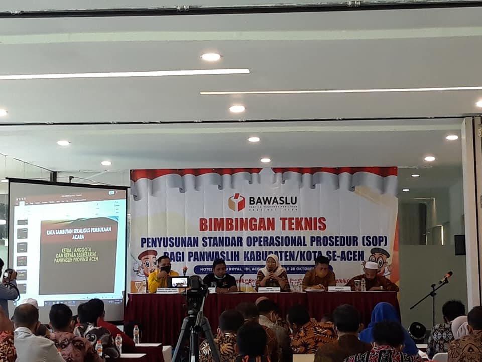Acara dibuka oleh ketua Panwaslih Provinsi Aceh Faizah, pengampu divisi SDMO dan Datin. Dalam pembukaan Faizah mengatakan berbicara SOP tentu berbicara prosedur layanan, kita wajib memberikan pelayanan kepada masyarakat sesuai tupoksi lembaga kita yaitu melakukan pengawalan dan penegakan hukum pemilu, "kita wajib memberikan layanan kepada masyarakat, dengan SOP agar tidak ada layanan ganda sehingga layanan berlaku semua sama", tegasnya.